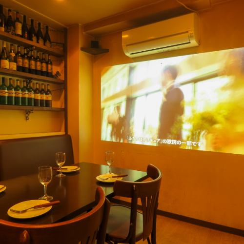 2F:テーブル席。大型テレビをご用意しているので、ムービーなど流せます!